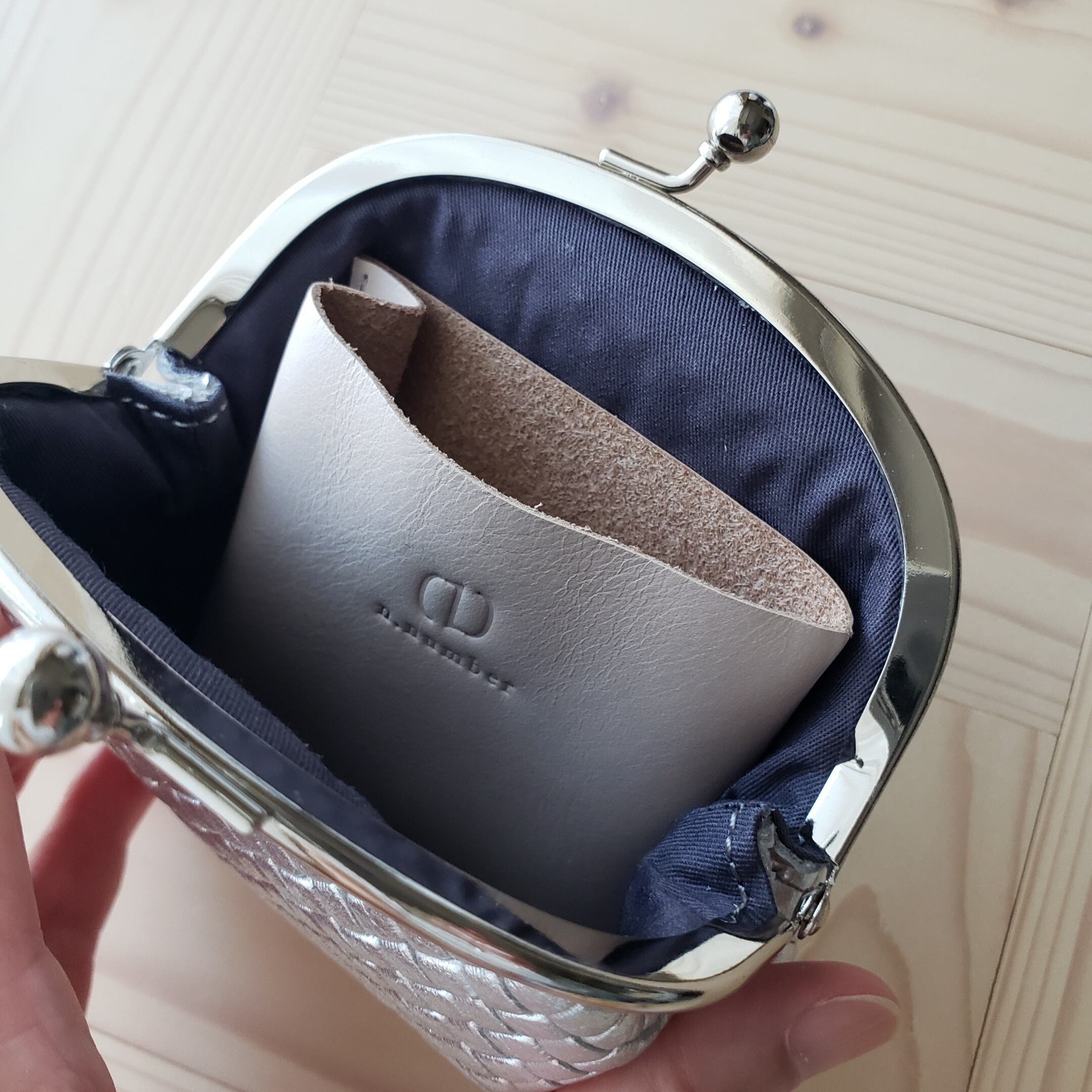 ケース in がま口財布 シルバーメッシュ型押「手のひらサイズに、大人の便利さを」