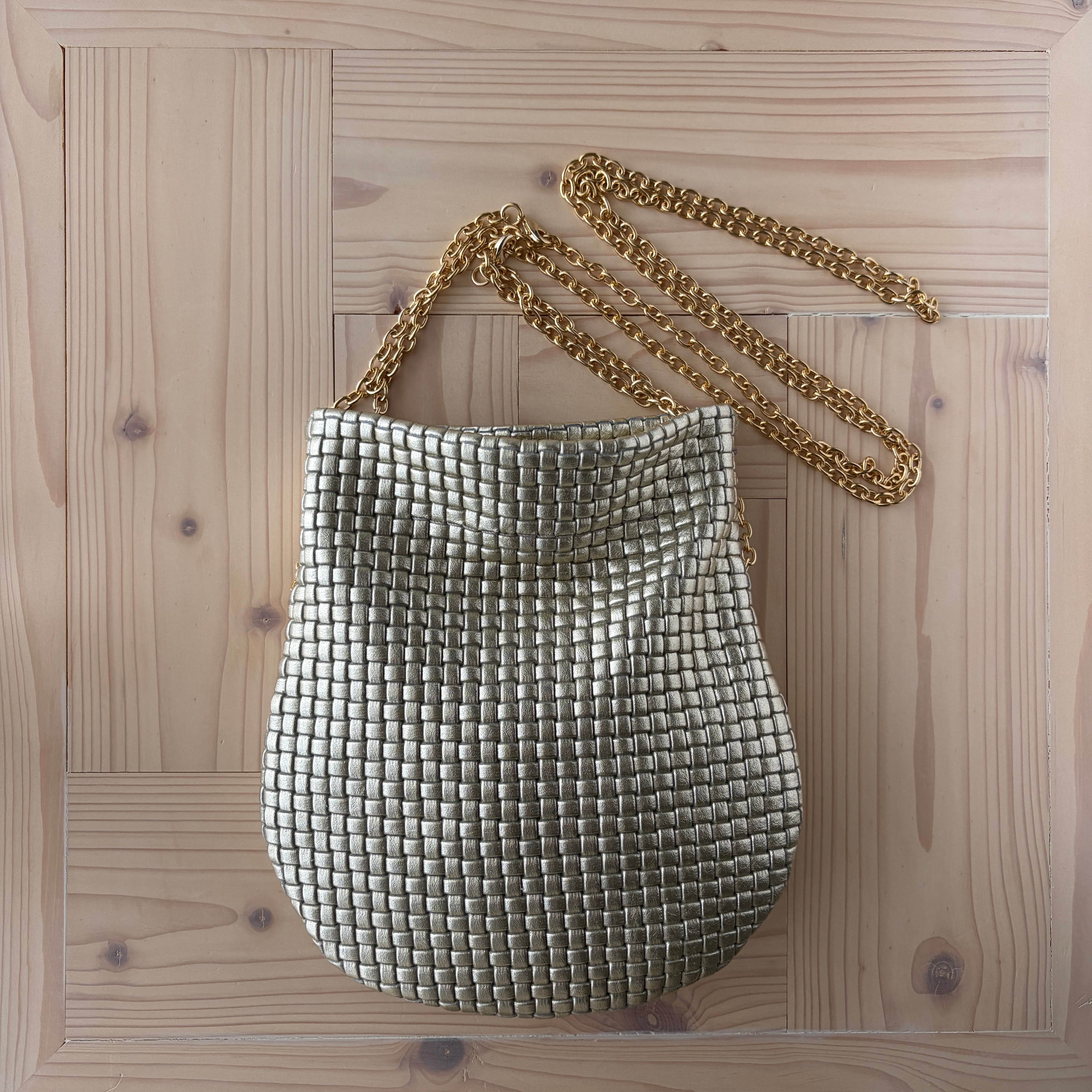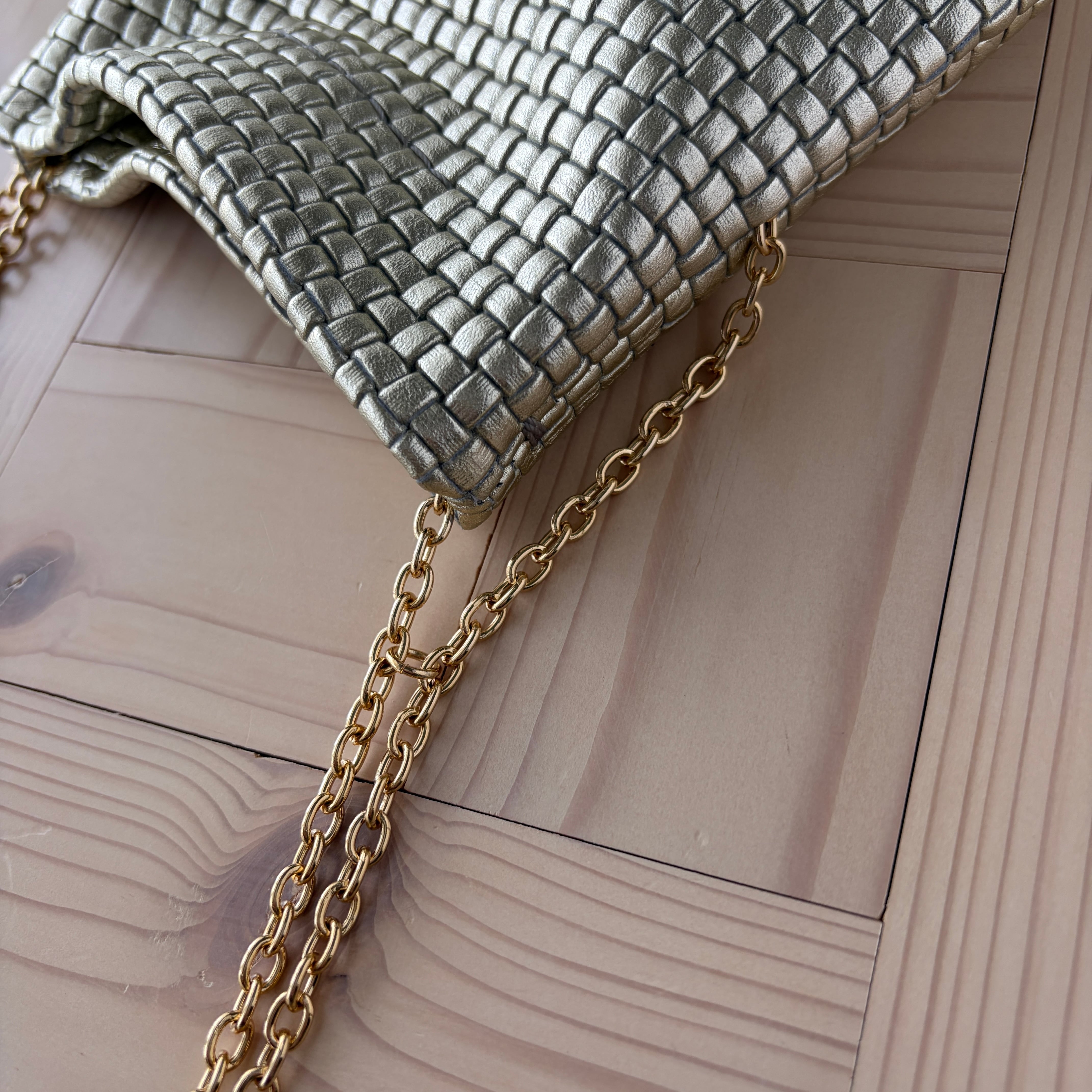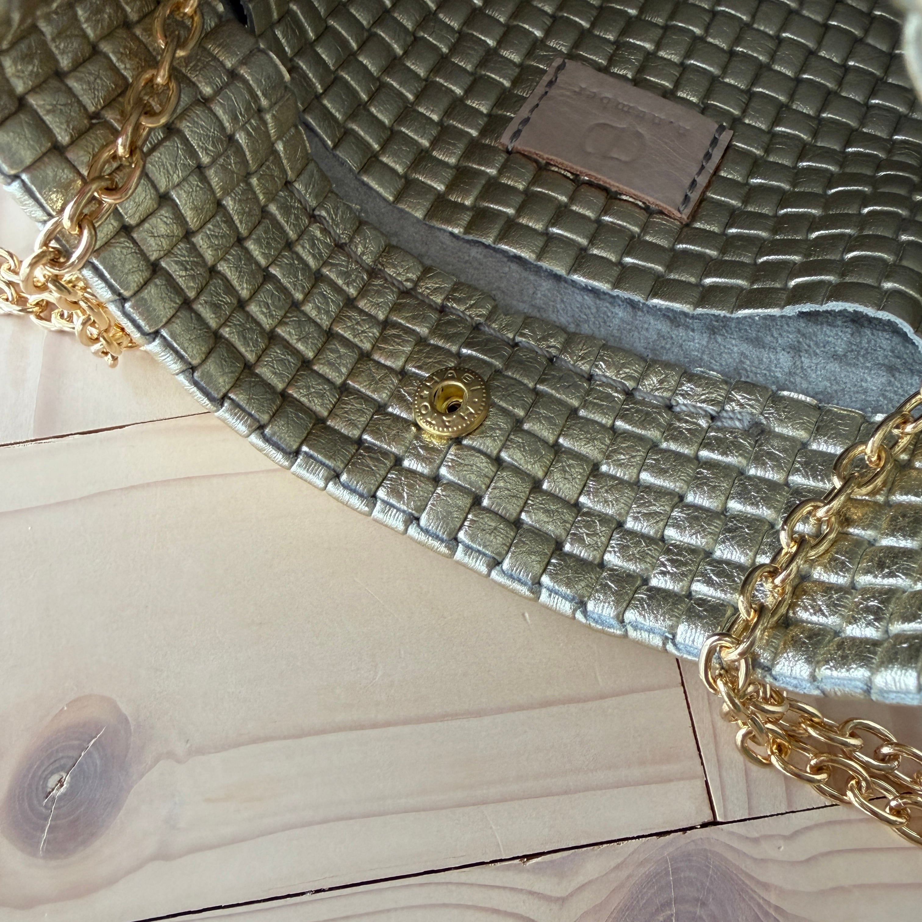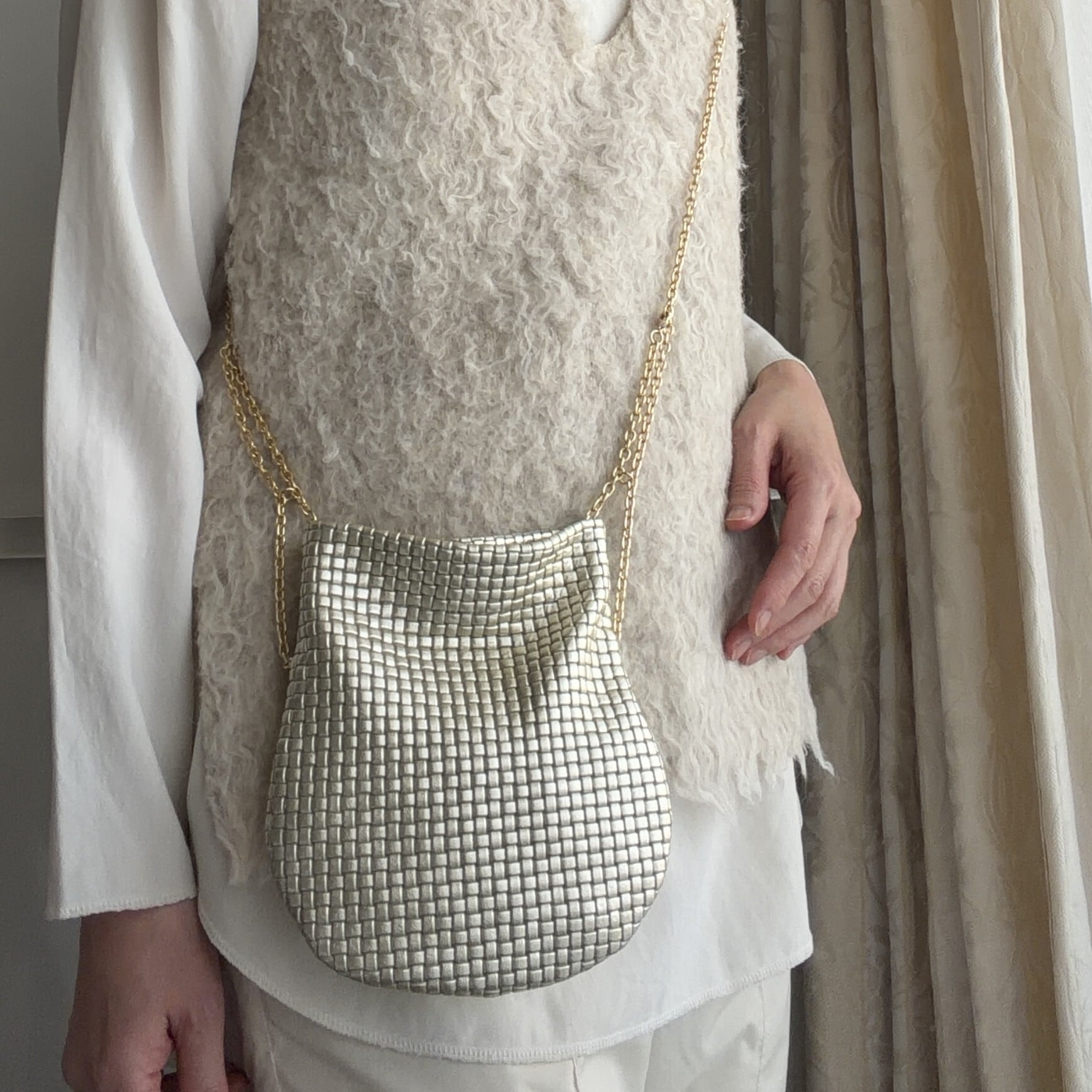 フラットRポシェット ゴールド 牛革メッシュ型押(チェーン特別仕様)