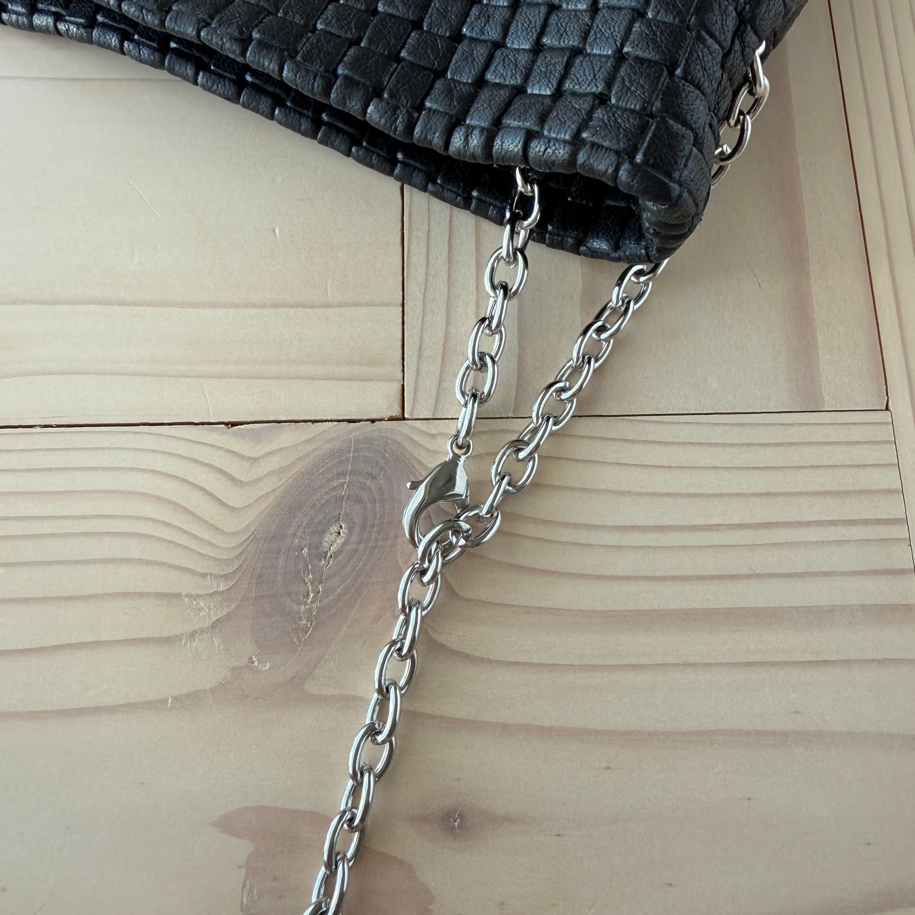 一見すると本物の編み込みのような立体感を感じさせますが、実は一枚革で仕立てているため驚くほど軽量。長時間のお出かけでもストレスになりません。
