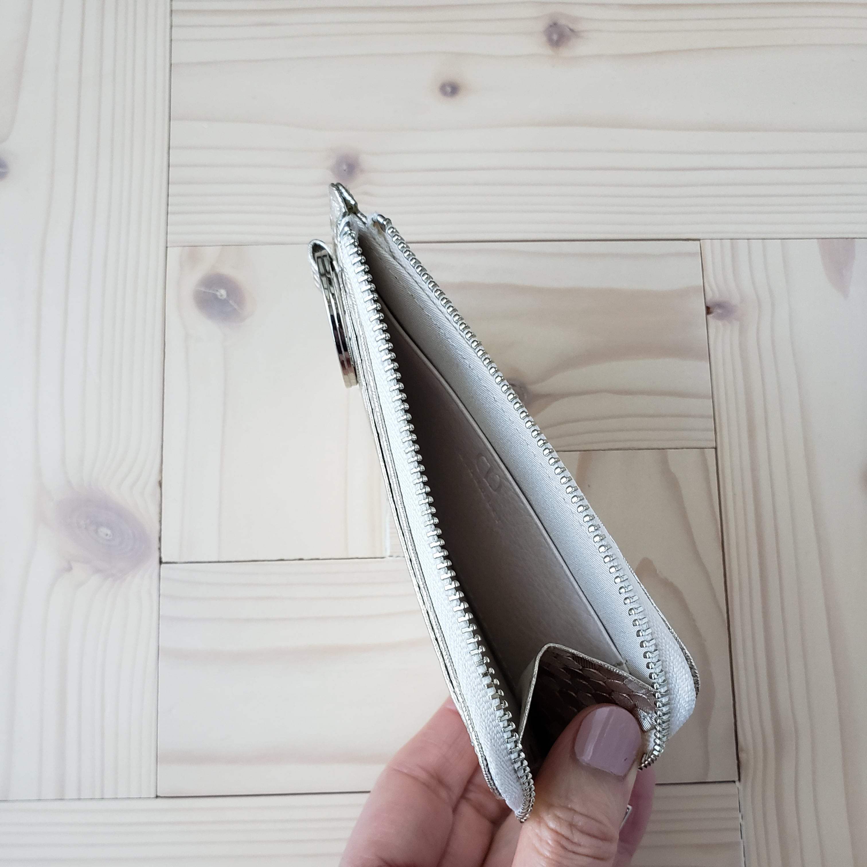 ファスナーを開けると、カードはもちろんのこと、ササマチ付きなので小銭入れとしてもお使い頂けます。